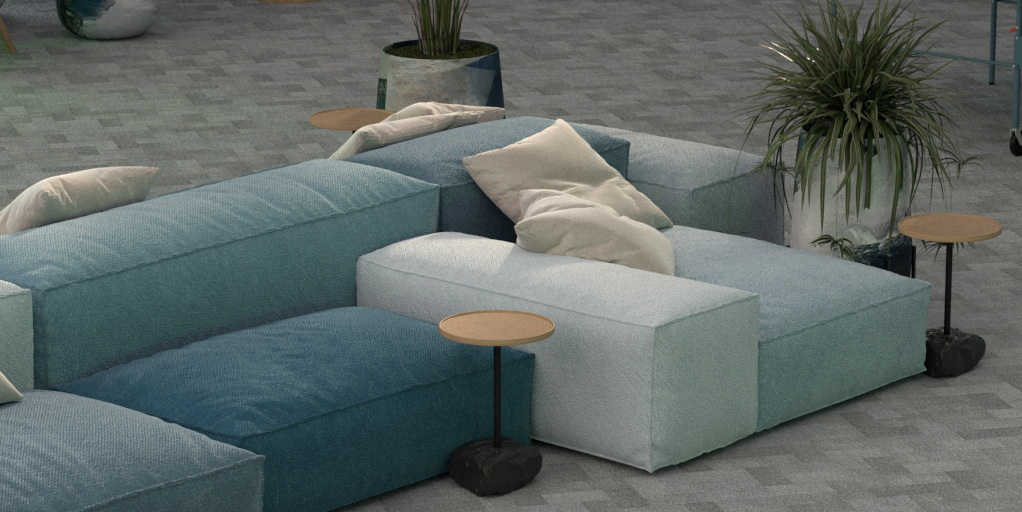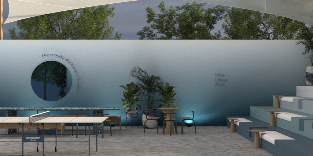 the materials selected are authentic natural materials that are fun and durable. terrazzo brings a playful and modern element to the space. soft furnishings add a sense of comfort and contribute to the tactile experience by being available in a variety of textures. wood is frequently used around the space for warmth. natural plants are also used to add life and good energy.